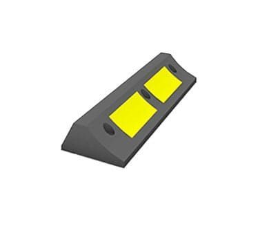 Battiruota per autocarri realizzati con materiale di recupero eco-sostenibile ed inserti rifrangenti. Prodotto per installazione su asfalto.